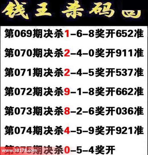 3d之家第2014075期钱王杀码图: