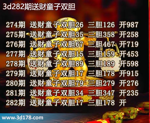 下面我们一起来回顾一下3d之家胆码图送财童子三胆近期推荐详情: