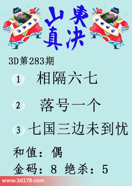 福彩3d第2021283期山东真诀图如下所示: