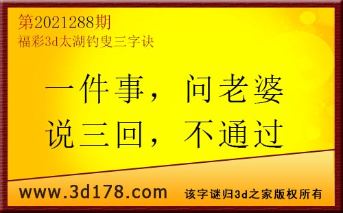3d第21288期太湖字谜:一件事,问老婆,说三回,不通过