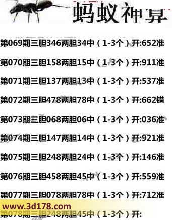 3d之家第078期蚂蚁神算胆码推荐: