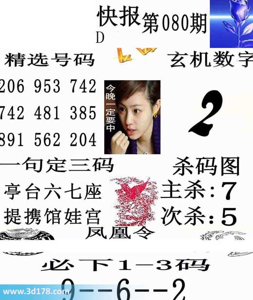 福彩3d之家第2014080期凤凰快报推荐: