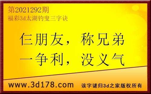 3d第21292期太湖字谜:仨朋友,称兄弟,一争利,没义气