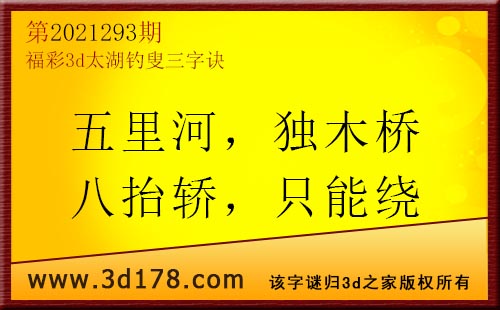 3d第21293期太湖字谜:五里河,独木桥,八抬轿,只能绕