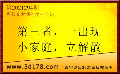 3d第21294期太湖字谜:第三者,一出现,小家庭,立解散