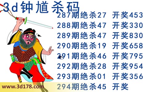 近期3d钟馗杀码的杀号详细如下: