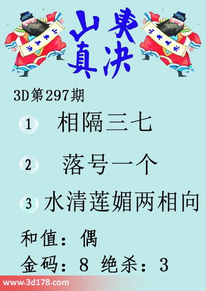 福彩3d第2021297期山东真诀图如下所示: