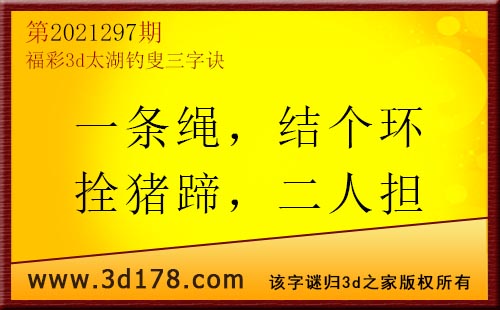3d第2021297期太湖字谜:一条绳,结个环,拴猪蹄,二人担