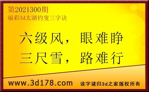 3d第21300期太湖字谜:六级风,眼难睁,三尺雪,路难行