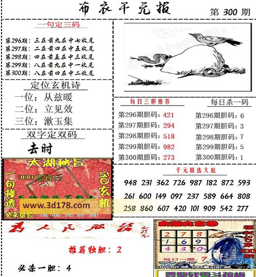福彩3d布衣图库布衣千元报第2021300期定位玄机诗: