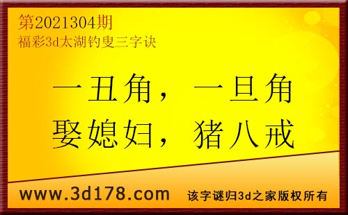 3d第2021304期太湖字谜:一丑角,一旦角,娶媳妇,猪八戒