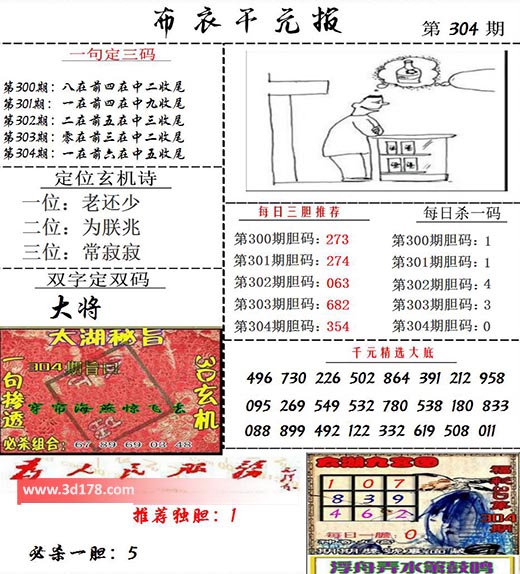 福彩3d布衣图库布衣千元报第2021304期定位玄机诗:
