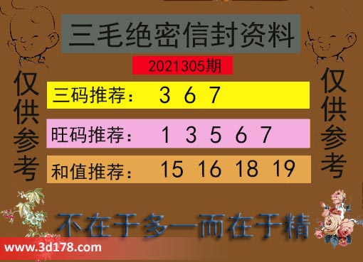 福彩3d第21305期三毛绝密信封资料图详解: