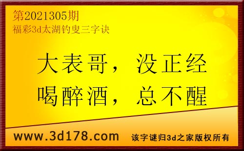 3d第21305期太湖字谜:大表哥,没正经,喝醉酒,总不醒