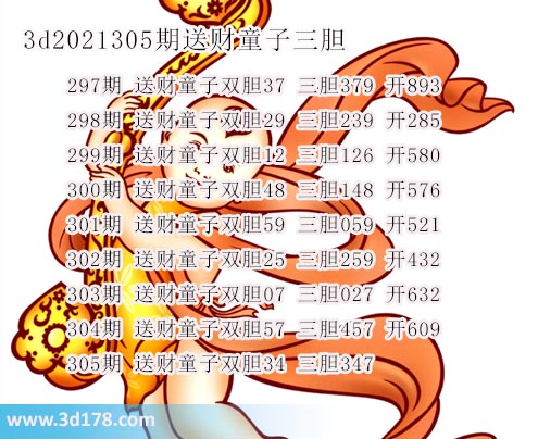 胆码图库3d第2021305期送财童子图: