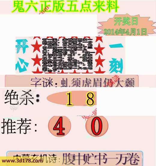 3d第2014083期鬼六五点来料: