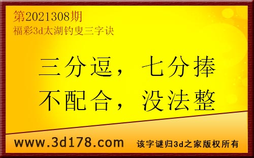 3d第21308期太湖字谜:三分逗,七分捧,不配合,没法整