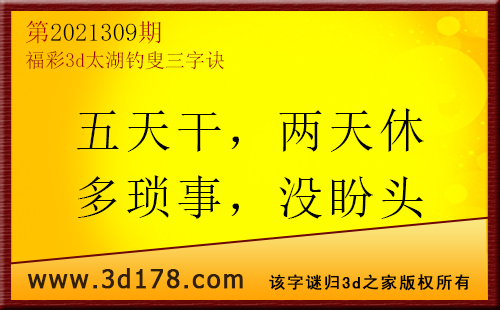 3d第21309期太湖字谜:五天干,两天休,多琐事,没盼头