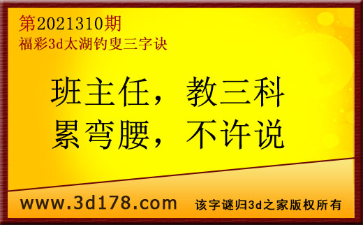 3d第21310期太湖字谜:班主任,教三科,累弯腰,不许说