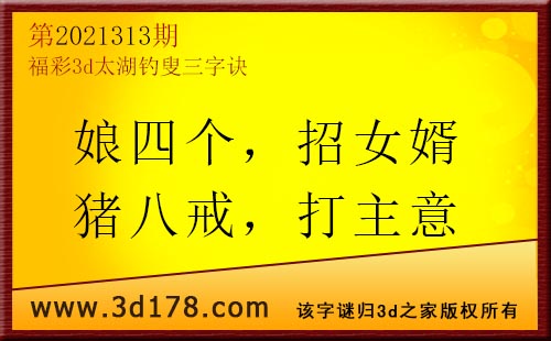 3d第21313期太湖字谜:娘四个,招女婿,猪八戒,打主意