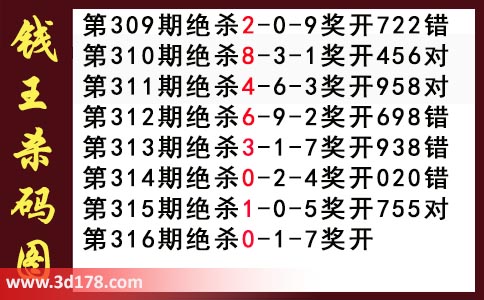 近期3d钱王杀码具体详情: