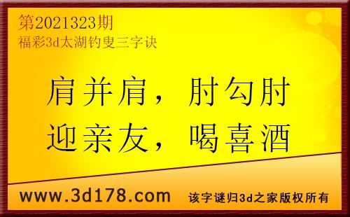 3d第21323期太湖字谜:肩并肩,肘勾肘,迎亲友,喝喜酒