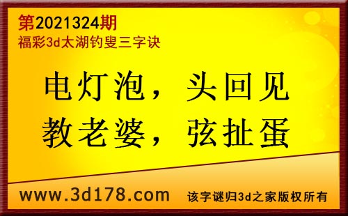 3d第21324期太湖字谜:电灯泡,头回见,教老婆,弦扯蛋