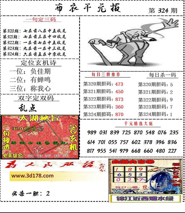 福彩3d第2021324期布衣千元报图详情分析如下:
