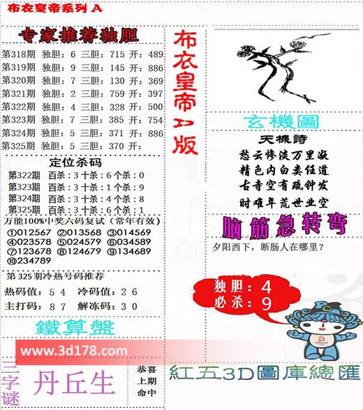 福彩3d第2021325期布衣皇帝A版布衣专家独家推荐: