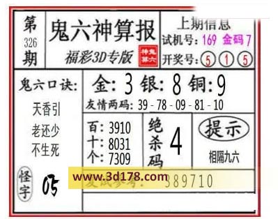 3d第21326期鬼六神算报为您推荐鬼六口诀: