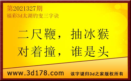 3d第21327期太湖字谜:二尺鞭,抽冰猴,对着撞,谁是头