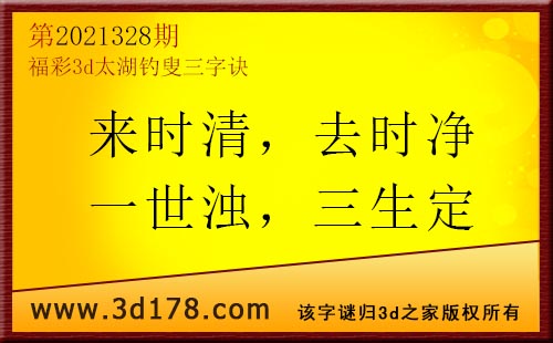 3d第21328期太湖字谜:来时清,去时净,一世浊,三生定