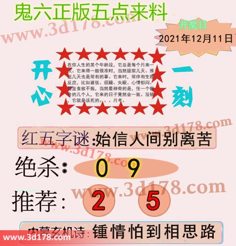 福彩3d第2021331期鬼六五点来料: