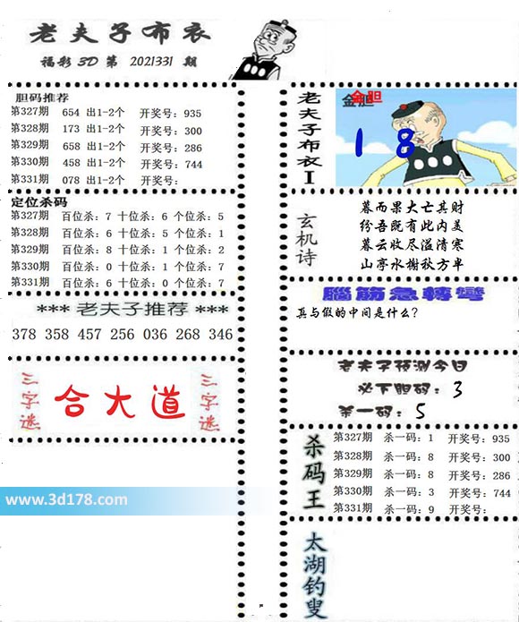福彩3d第2021331期老夫子布衣图详情: