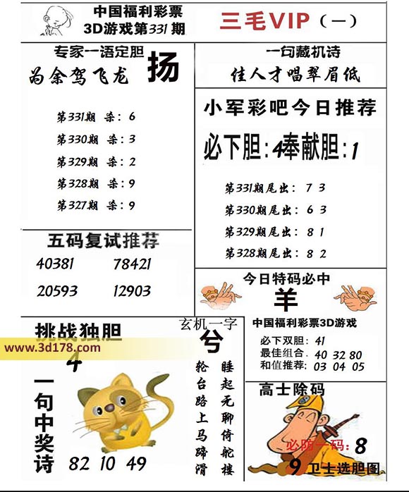 3d第2021331期三毛图库推荐: