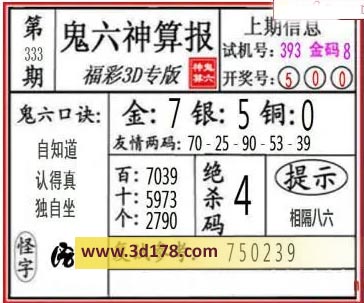 3d第21333期鬼六神算报为您推荐鬼六口诀: