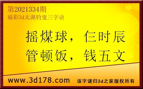 3d第21334期太湖字谜:摇煤球,仨时辰,管顿饭,钱五文