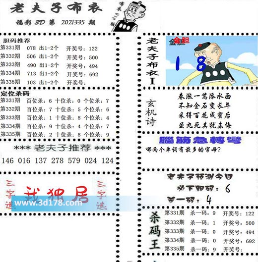 福彩3d第2021335期老夫子布衣图详情: