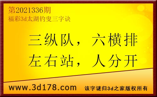 3d第21336期太湖字谜:三纵队,六横排,左右站,人分开
