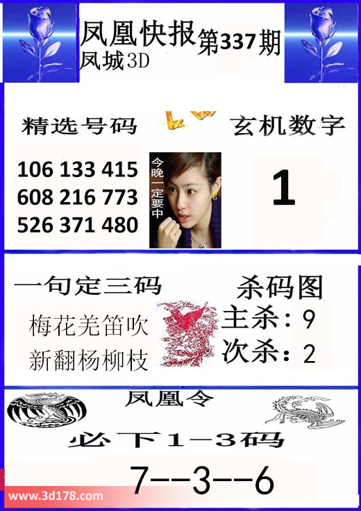福彩3d凤凰快报图第21337期精选号码推荐: