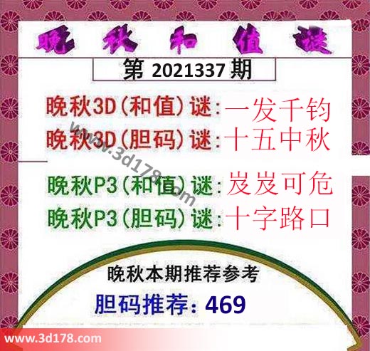 晚秋3D(和值)谜:一发千钧