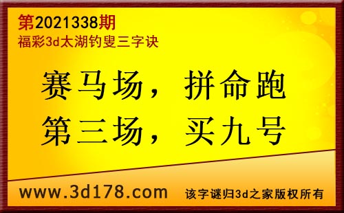 3d第21338期太湖字谜:赛马场,拼命跑,第三场,买九号