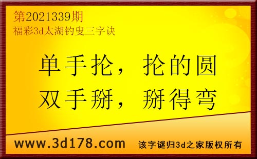 3d第2021339期太湖字谜:单手抡,抡的圆,双手掰,掰得弯