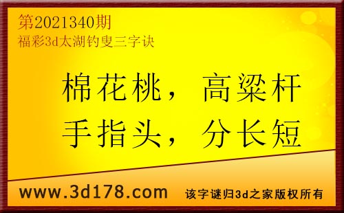 3d第21340期太湖字谜:棉花桃,高粱杆,手指头,分长短