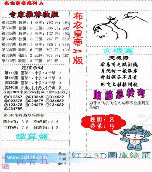 福彩3d第2021340期布衣皇帝A版布衣专家独家推荐: