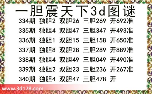 本期一胆震天下3d图谜: