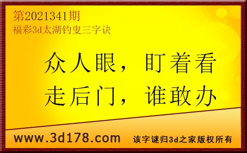 3d第21341期太湖字谜:众人眼,盯着看,走后门,谁敢办