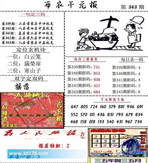 福彩3d第2021343期布衣千元报图详情分析如下: