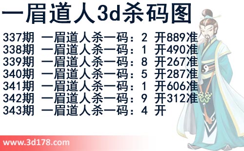 该一眉道人3d杀码图由3d之家3d图库频道原创,仅供彩民参考,温馨提供。