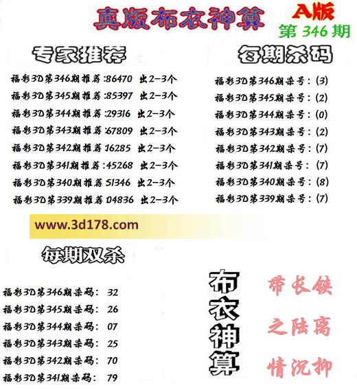 3d之家布衣图库之布衣神算图第2021346期详解: